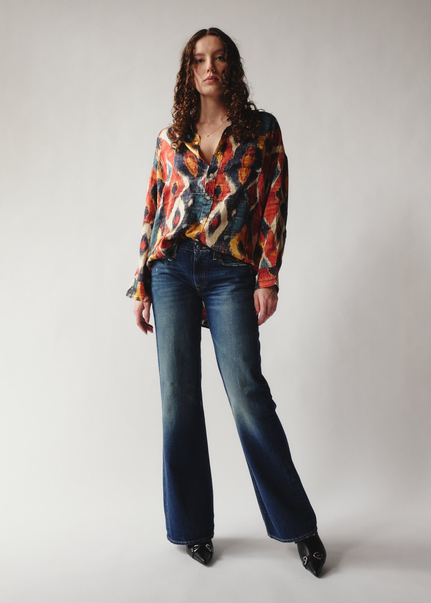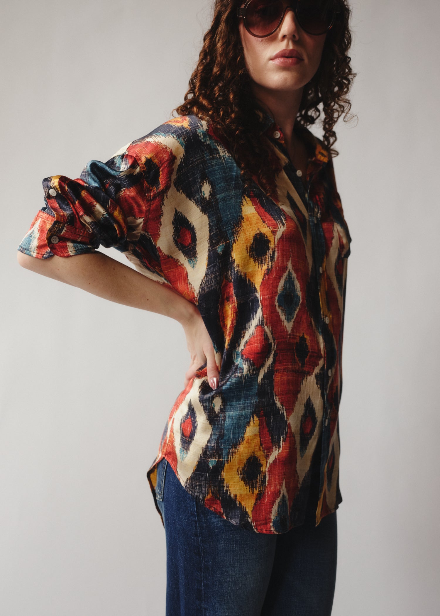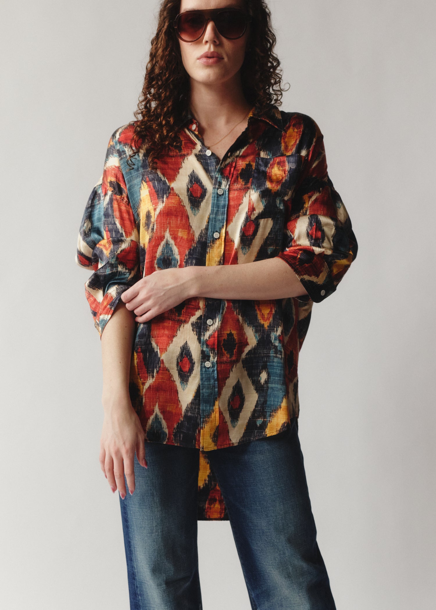 Oversized drop neck Ikat print shirt