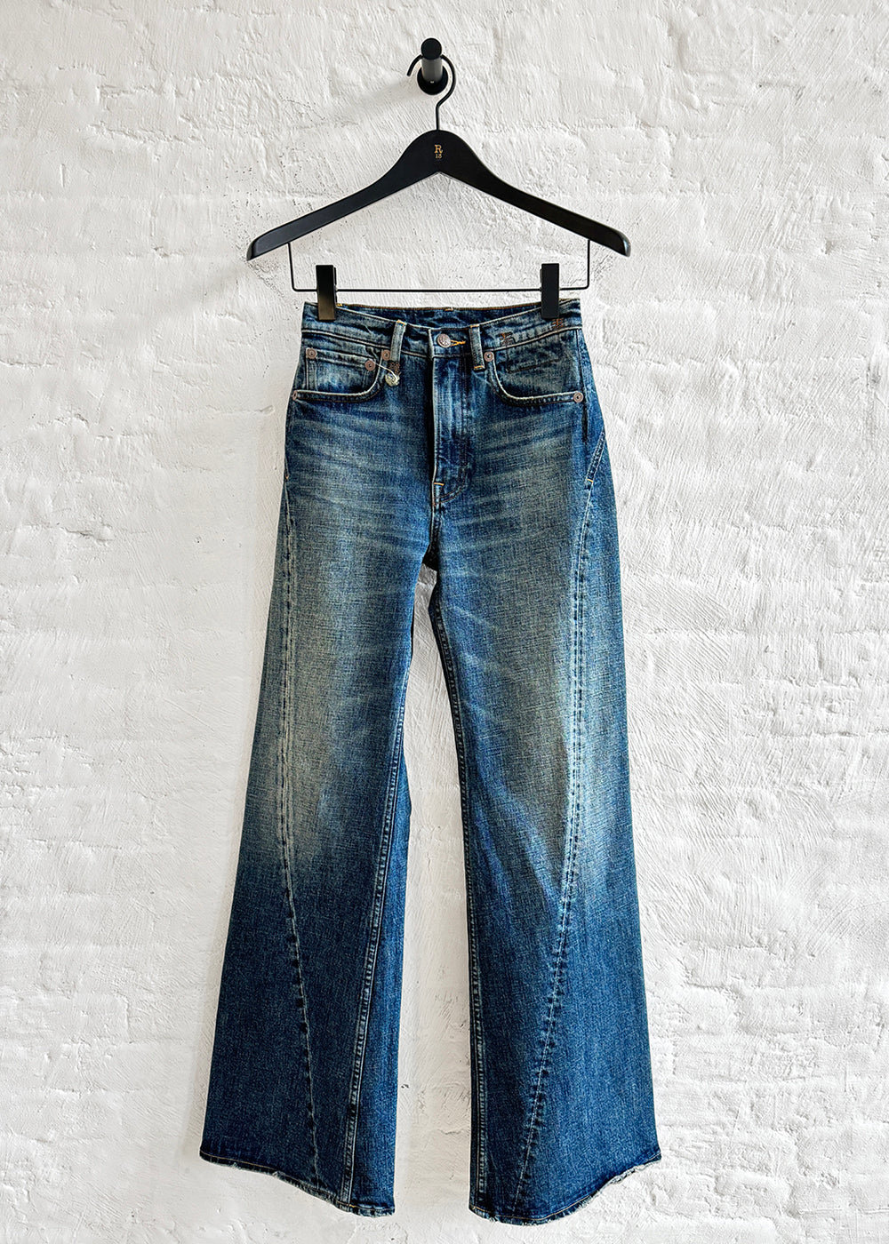 Wide leg jeans with a twisted seam in Melvin denim